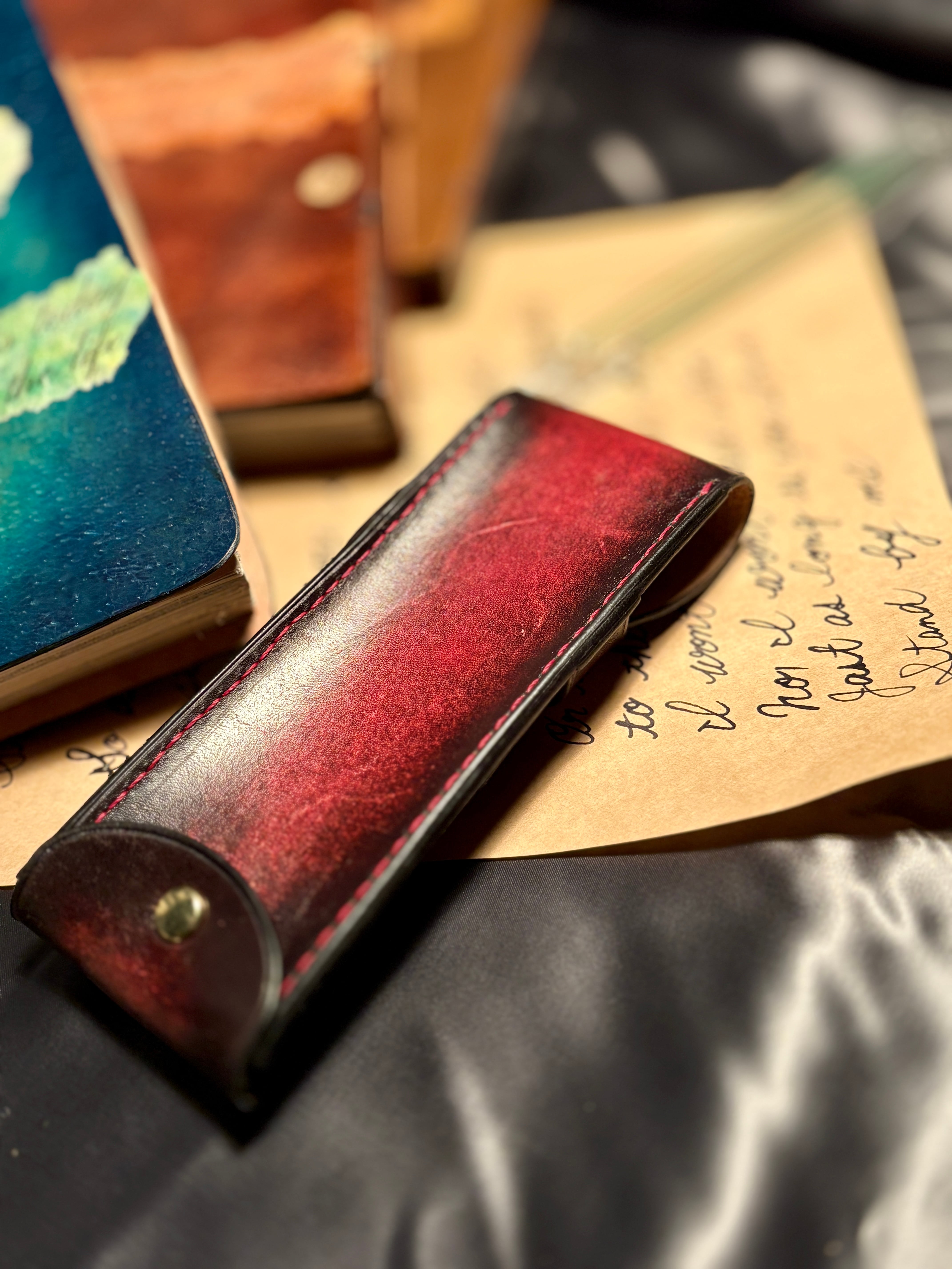手染めアンティーク風ペンケース レッド