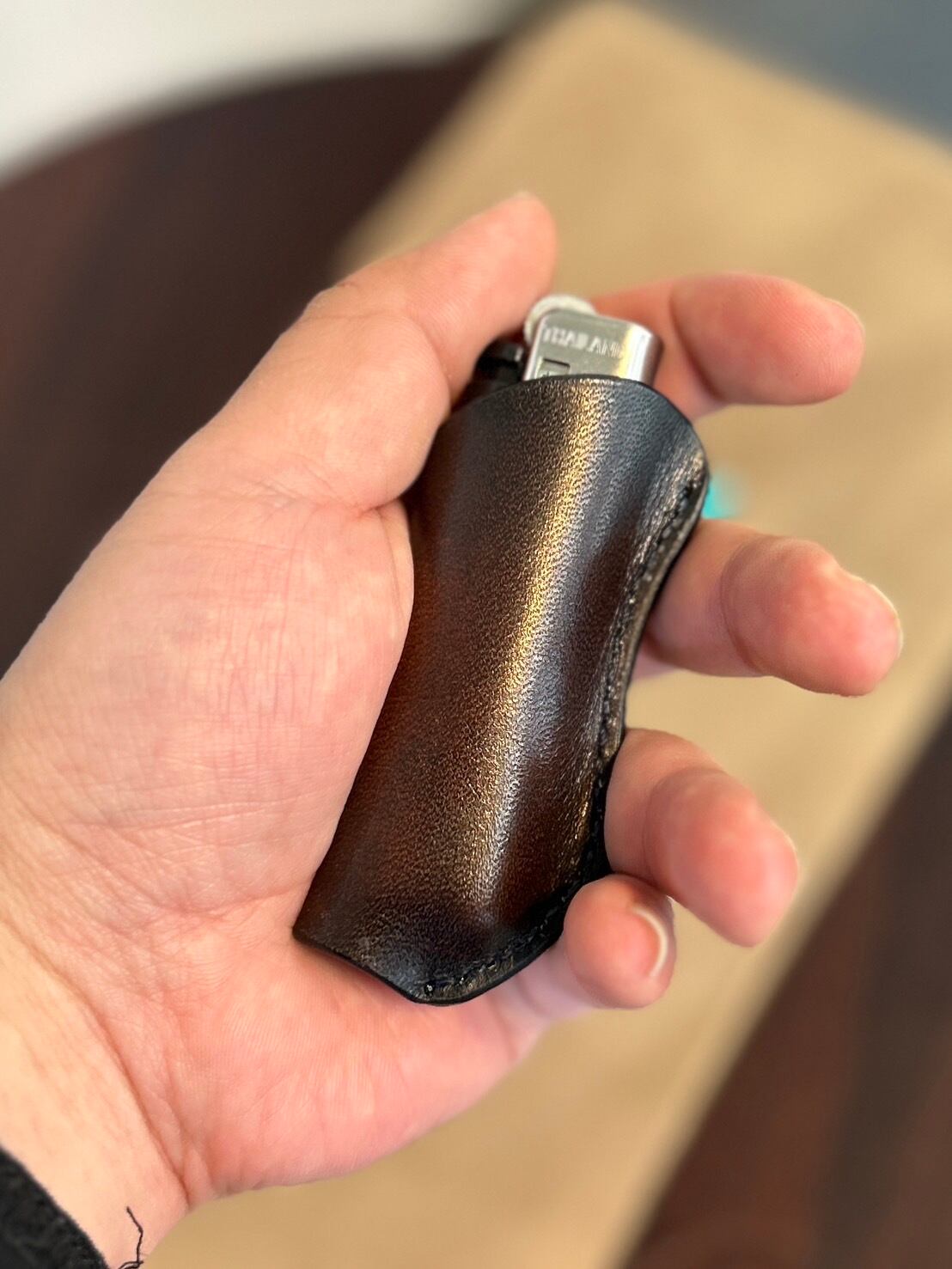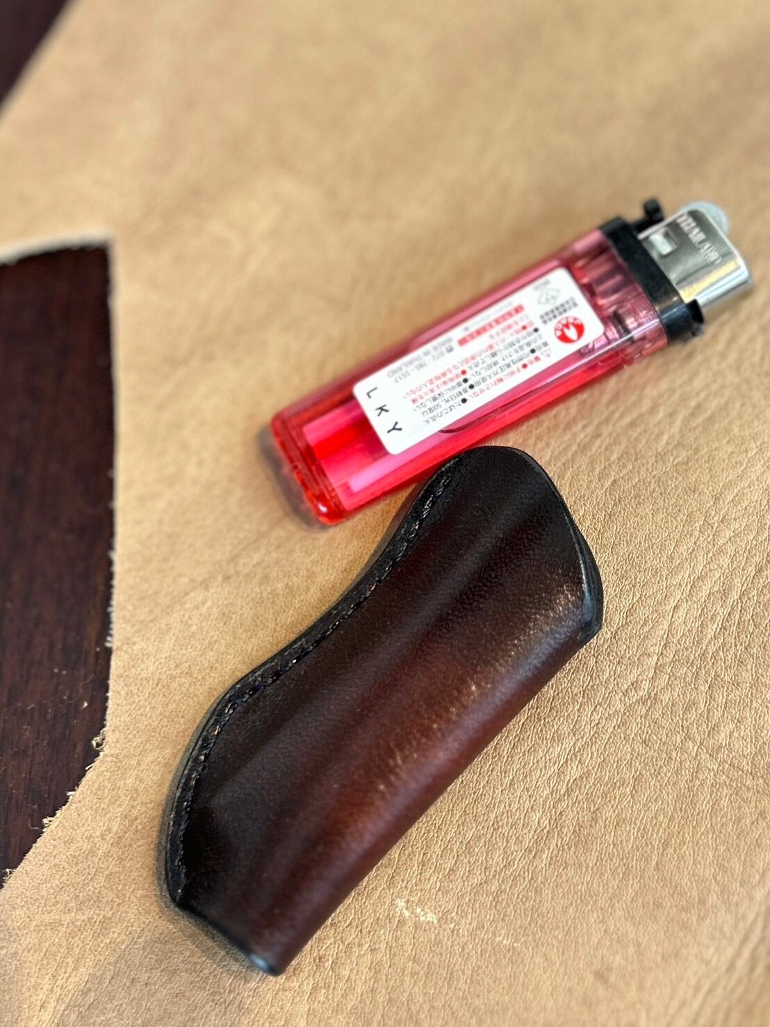 手になじむ手染めの100円ライターケース。手作りのため、一つ一つ風合いが異なり使い込むほどに味わいが増すので、愛着を持って長くご使用いただけます。
